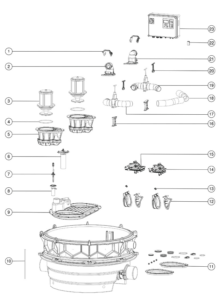 Trockenaufstellung, für fäkalienhaltiges Abwasser, Bodenteil aus PE, für Einbau in frostgeschützten Räumen (frei aufgestellt) oder in Kombination mit Technikschacht-Modul, zum Einbau ins Erdreich, beständig bei Einbau ins Grundwasser bis 3000 mm, die Druckleitung ist als geschweißtes PE-Rohr, bei Pumpe SPF 4500 zusätzlich in einem Druckentspannungsschacht auszuführen, Rückstauhebeanlage Ecolift XL Duo, Zulauf/Auslauf DN 150, mit Comfort Plus-Schaltgerät, mit zwei mechanischen Klappen für Grauwasser, 230 V-Versionen steckerfertig, Kabellänge 10 m
