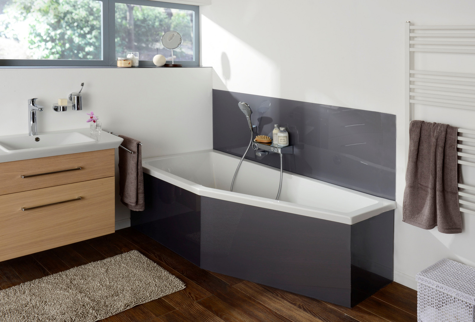 Acryl-Badewanne, Modelle mit ein oder zwei angenehmen Liegeflächen zum entspannten Baden, gegossenes Sanitäracryl, mit Bodenbrettern aus Holz verstärkt, rutschfest und angenehm hautsympatisch, hygienisch, UV-Beständig, bruchfest, Oberfläche aus durchgefärbtem Sanitäracryl, kleine Schäden können ausgebessert werden, geringe elektrische Leitfähigkeit, Wannentiefe von 440 - 450 mm (modellabhängig) für entspanntes Baden, Montage durch geringes Eigengewicht