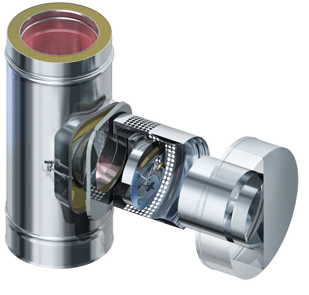 für den Außenbereich, leicht zugänglich für Einstellung und Wartung, für alle gängigen Schornsteinsystem, für alle Brennstoffe, T-Stück im Lieferumfang nicht enthalten, mit Tür für DW Reinigungsöffnung, ZUK 130 DW Typ 1/2 passend für Raab Universal-Reinigungsöffnung, ZUK 130 DW U ... passend für verschiedene andere Fabrikate