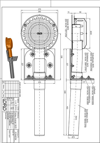 LORO Attika Ablauf Serie 62-Drainlet Wehrhöhe 60 mm, DN 70, Klemmflansch 90Grad, für Bitumen-Dachabdichtungsbahnen, Notablauf
