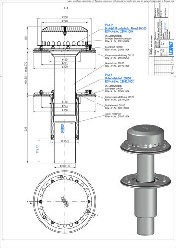 LORO DRAINJET Komplett-Flachdachablauf Serie 49 DN 100, Brandschutz werkseitig, Klemmflansch, zweiteilig, Hauptentwässerung