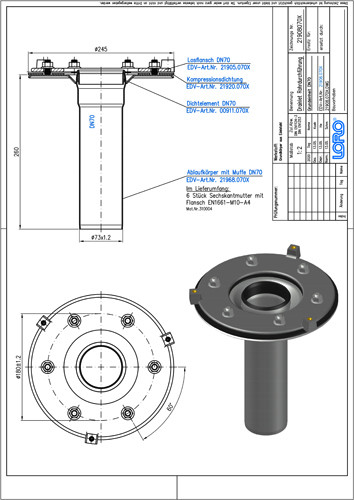 LORO DRAINLET Grundeinheit DN 70, Wärmedämmung, Klemmflansch, Auslauf senkrecht, für Verkehrsflächen W559211