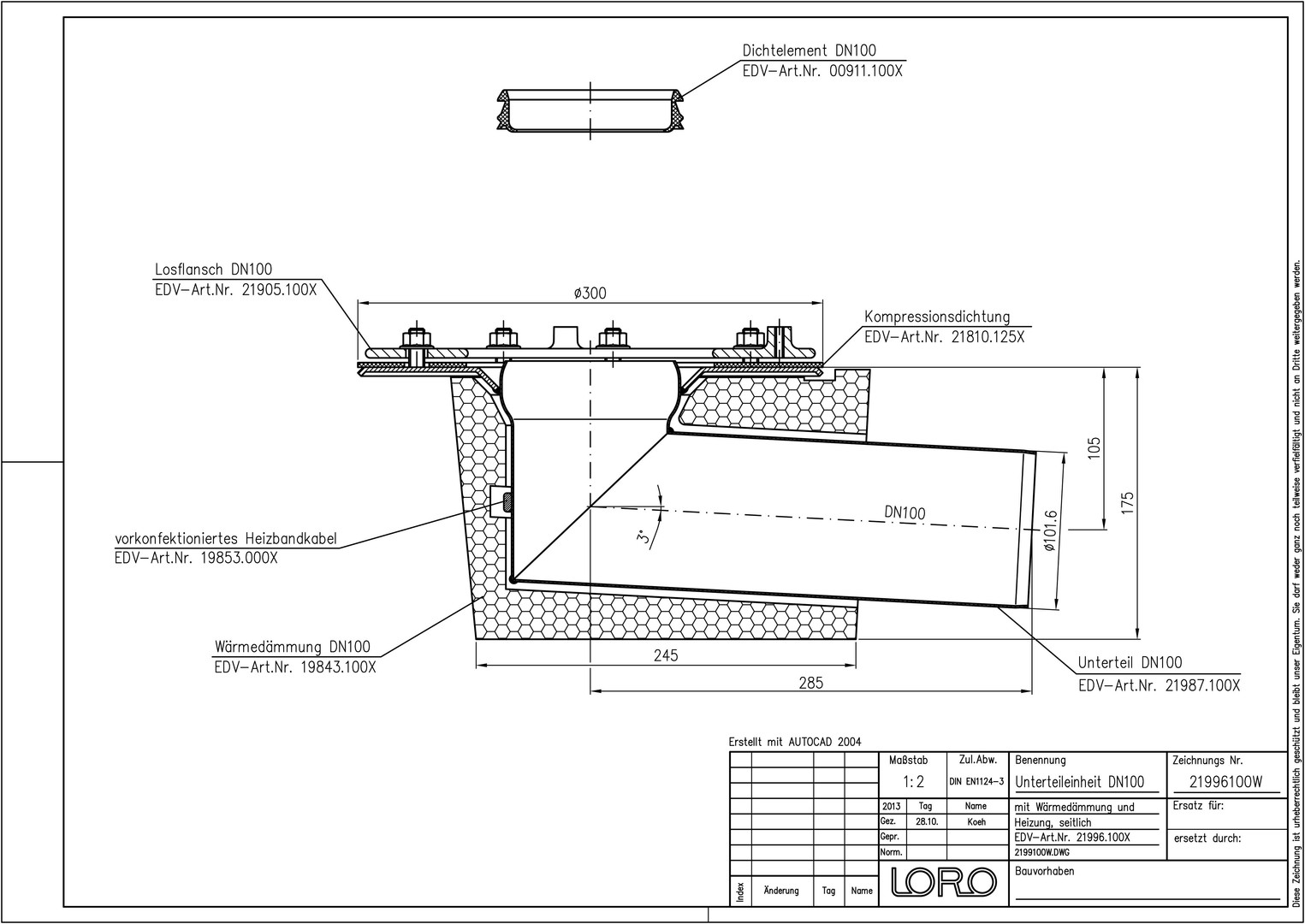 | Nenndurchmesser | DN 100 |