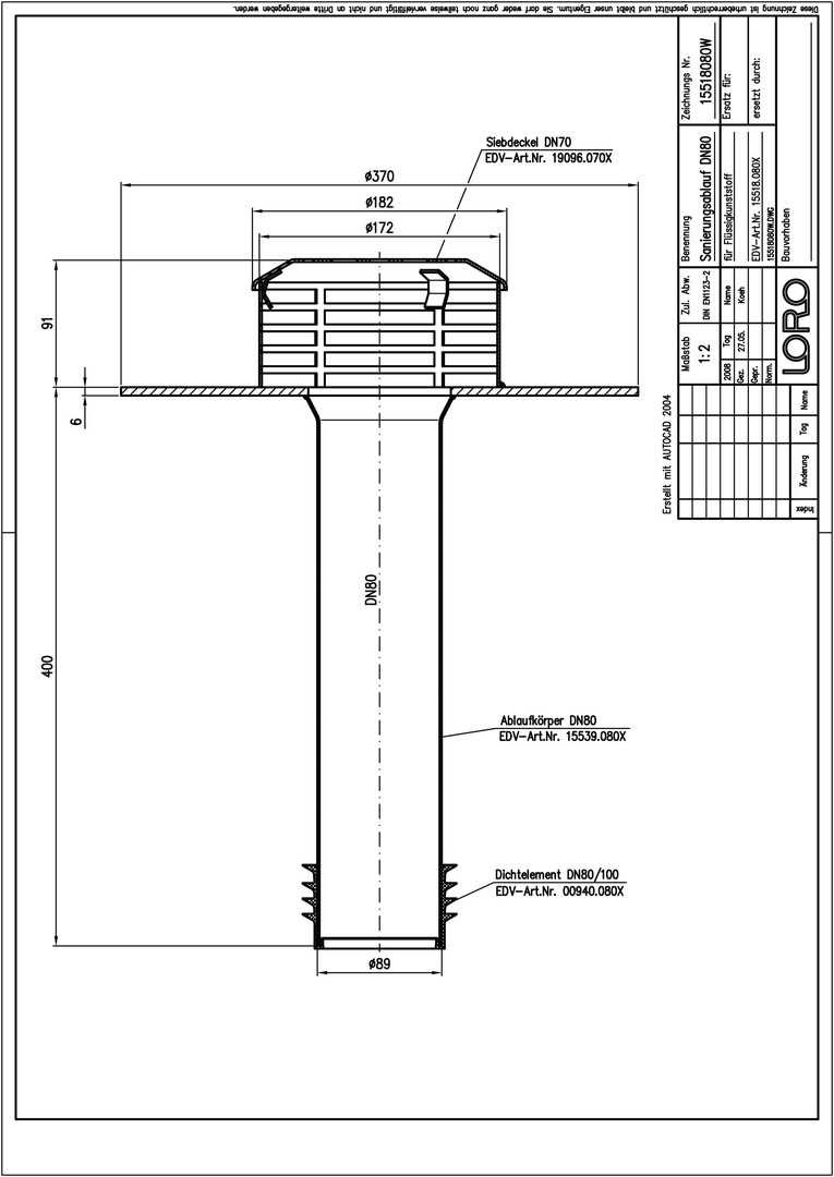 LORO Flachdach-Sanierungsablauf DN 80, Klebeflansch, für Flüssigkunststoff