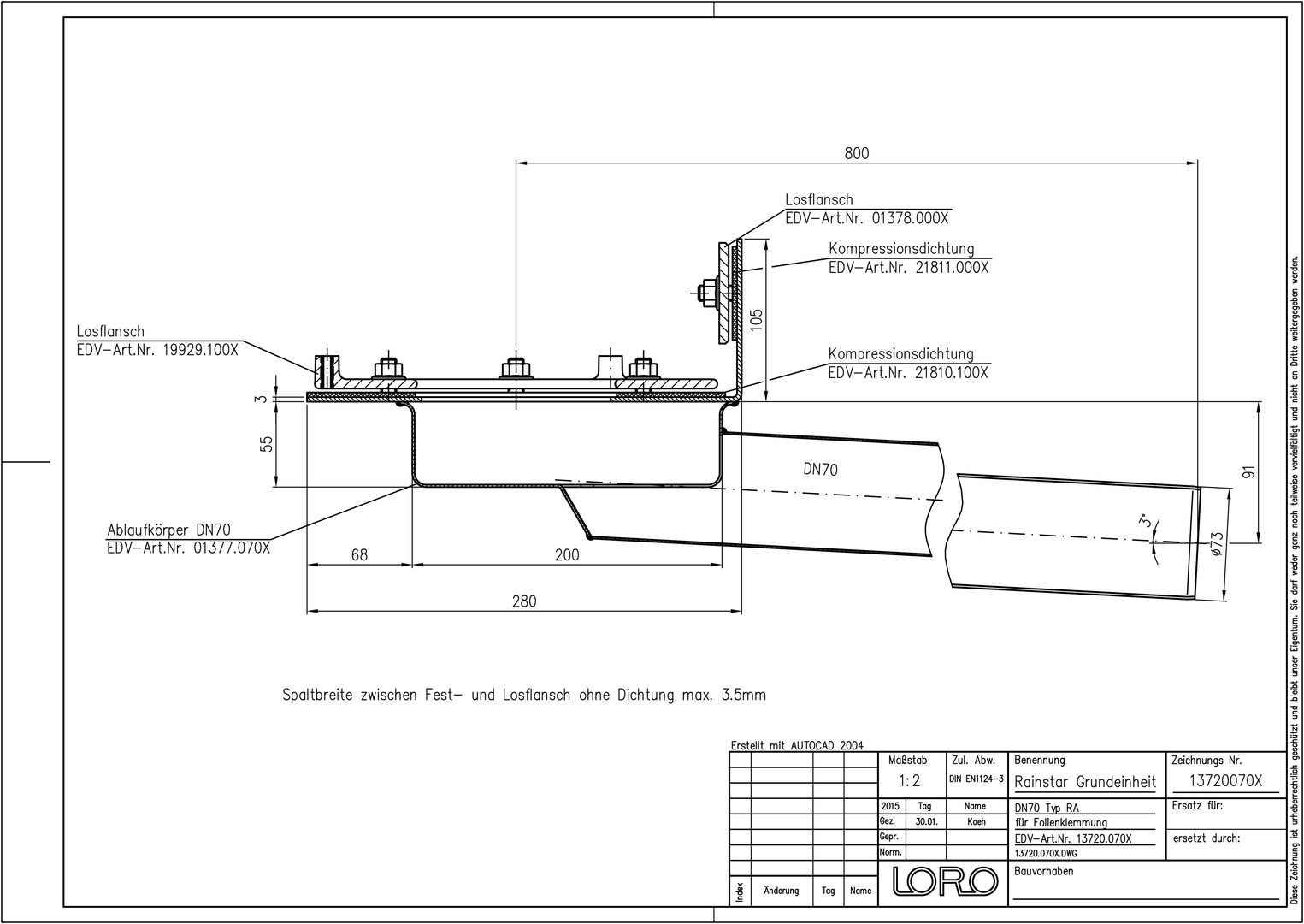 | Produktklasse | Dachabflusstrichter Seitenauslass |