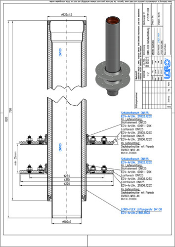 LORO LOROFLEX Flachdachdurchführungen DN 100, zweiteilig