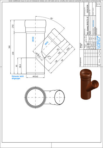 LORO N Reduzier-Abzweig DN 100/70, 45°, rückstausicher, Kupfer W553803