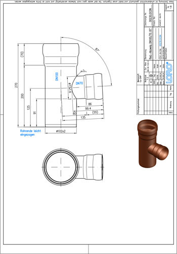 LORO N Reduzier-Abzweig DN 100/70, 45°, rückstausicher, Kupfer W553803