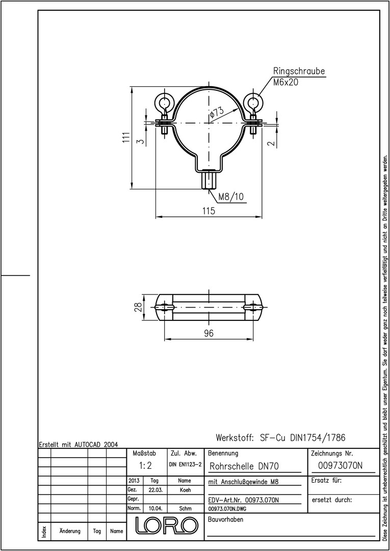 LORO N Rohrschelle DN 70, mit Anschlussgewinde, rund, Kupfer W553811