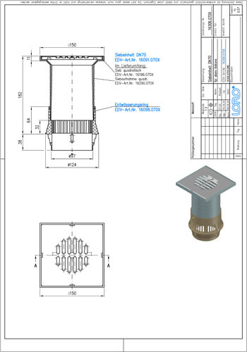 LORO Siebeinheit Serie H DN 70, für obere Balkone