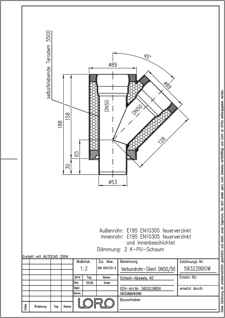 LORO Verbundrohr-Abzweig SILENT DN 50, 45° W554232