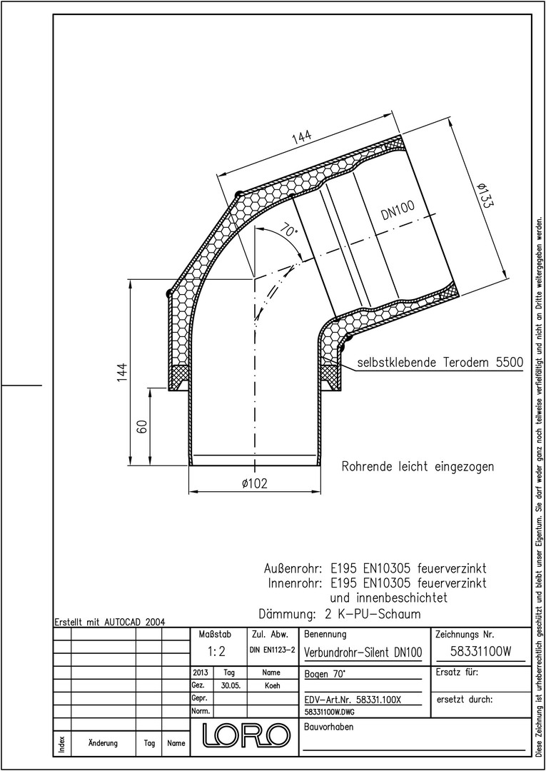 LORO Verbundrohr-Bogen SILENT DN 100, 70°