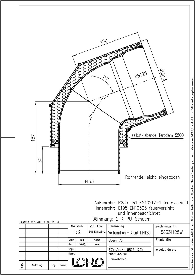 LORO Verbundrohr-Bogen SILENT DN 125, 70°
