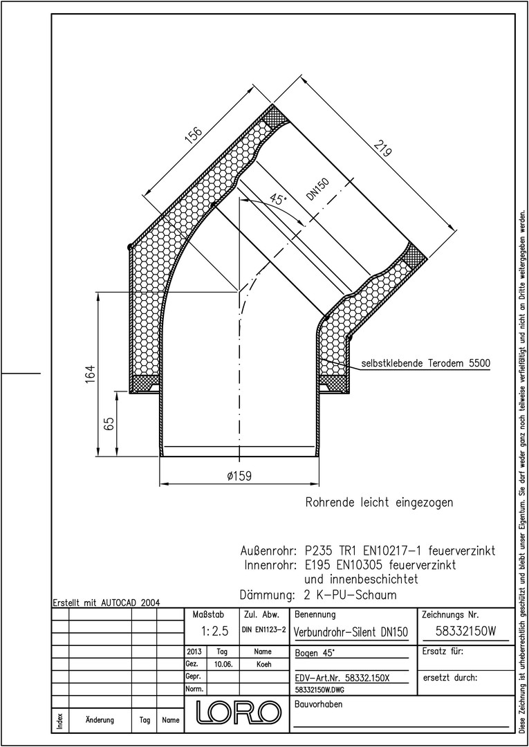 LORO Verbundrohr-Bogen SILENT DN 150, 45°