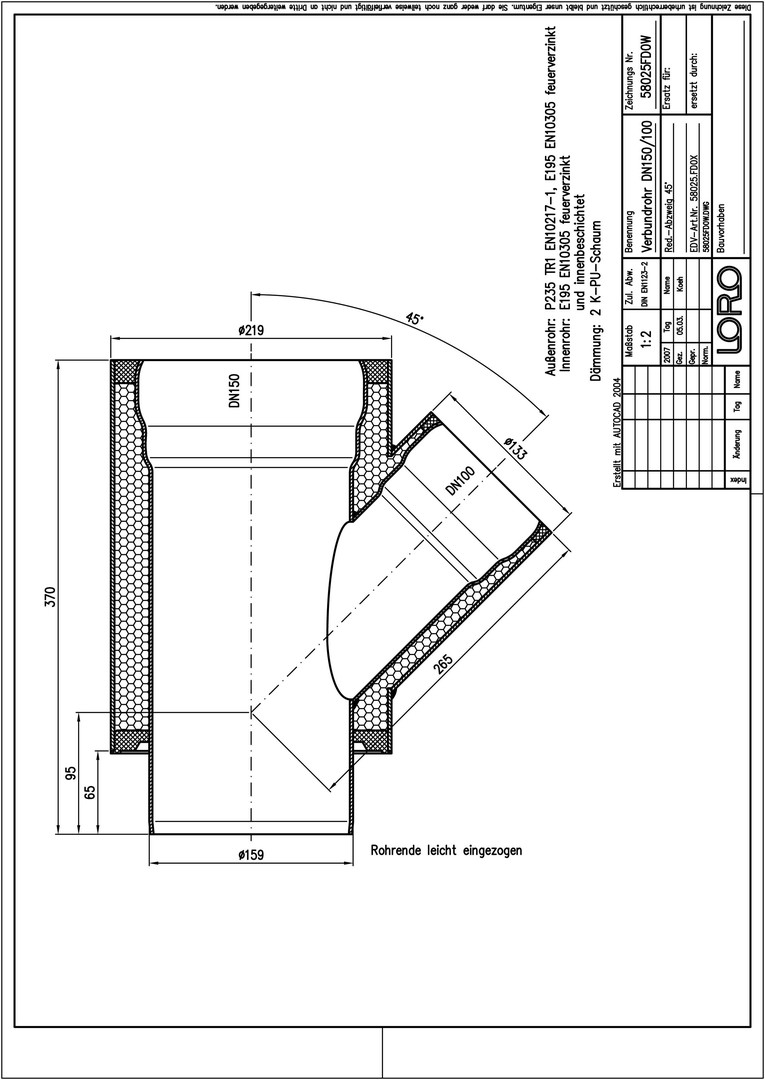 LORO Verbundrohr-Reduzier-Abzweig DN 150/100, 45°