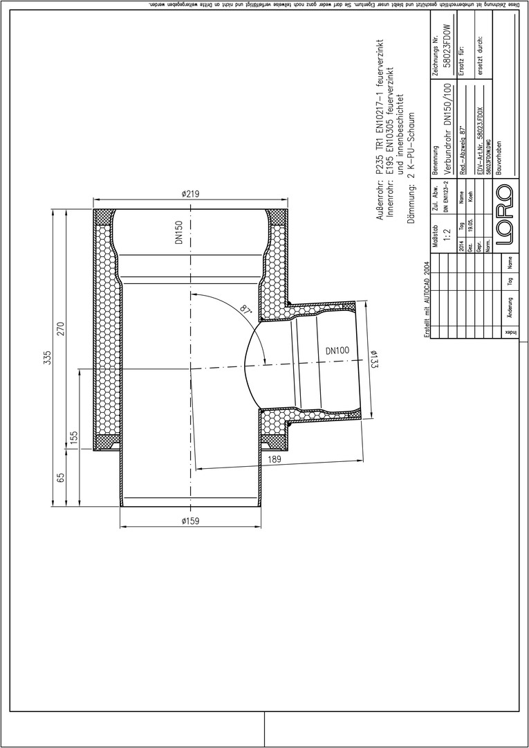 LORO Verbundrohr-Reduzier-Abzweig DN 150/100, 87°