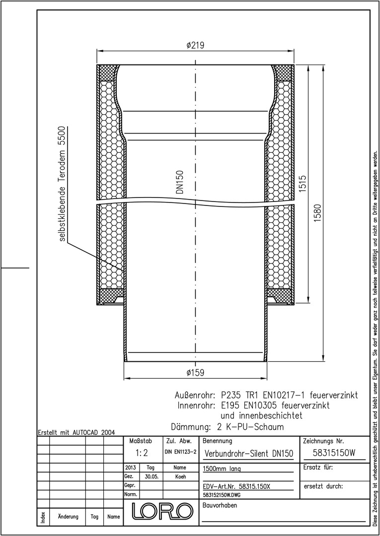 LORO Verbundrohr SILENT DN 150, 1500 mm