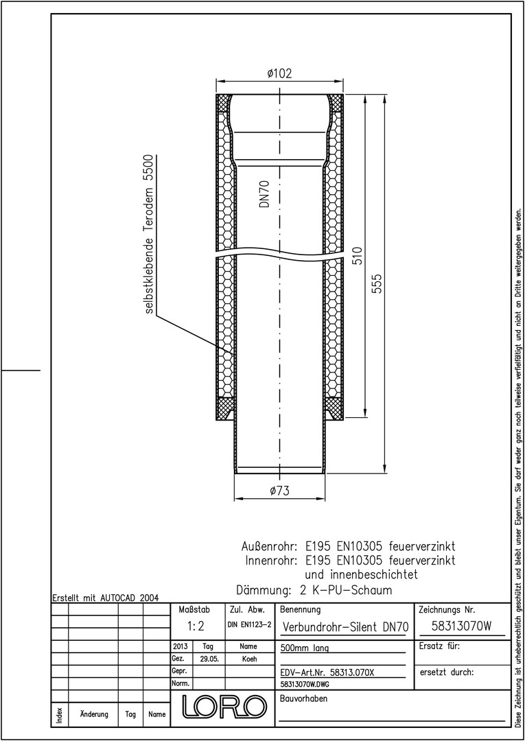 LORO Verbundrohr SILENT DN 70, 500 mm