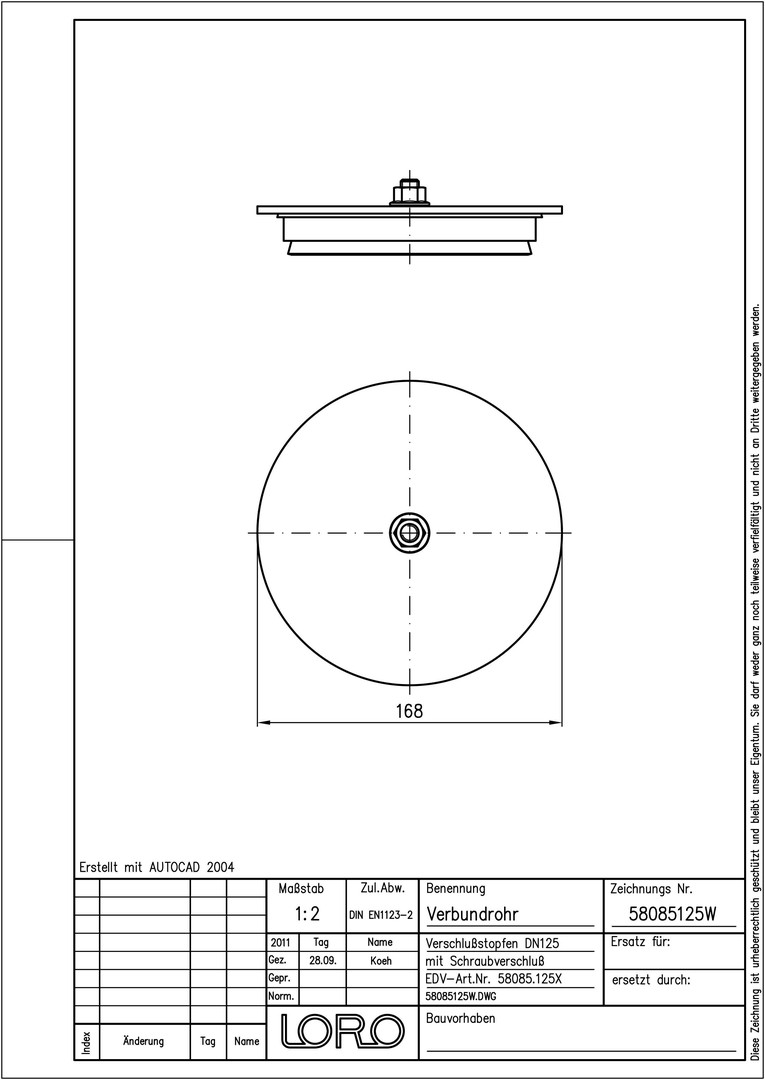 LORO Verbundrohr-Verschlussstopfen DN 125, mit Schraubverschluss W554187