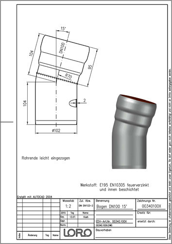 | Nenndurchmesser Anschluss 2 | DN 100 |