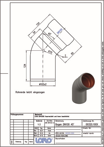 LORO X Bogen DN 100, 45°
