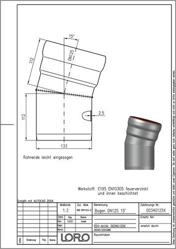 LORO X Bogen DN 125, 15°