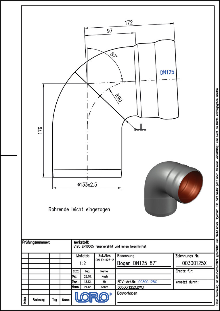 | Nenndurchmesser Anschluss 1 | DN 125 |