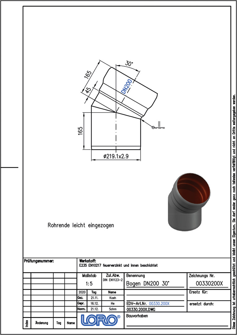 | Nenndurchmesser Anschluss 1 | DN 200 |