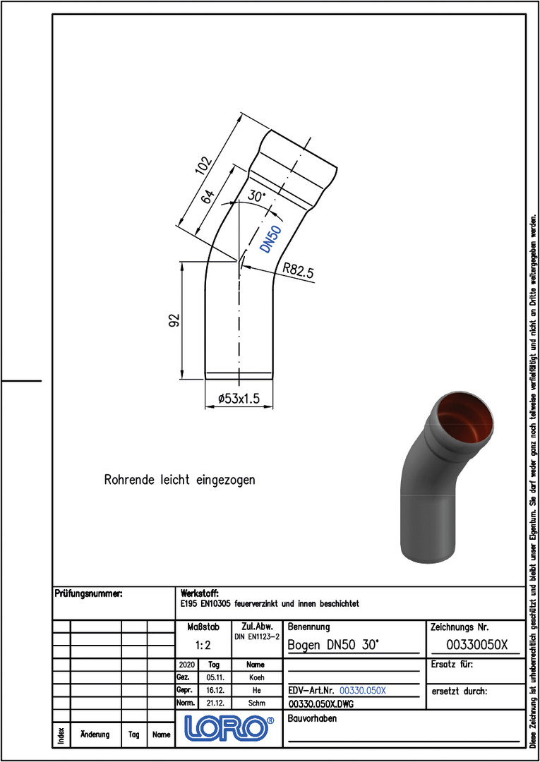 LORO X Bogen DN 50, 30°