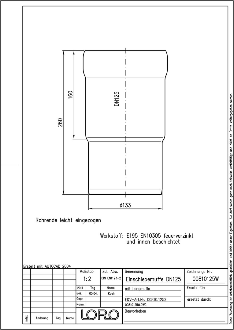 LORO X Einschiebmuffe DN 125, mit Langmuffe