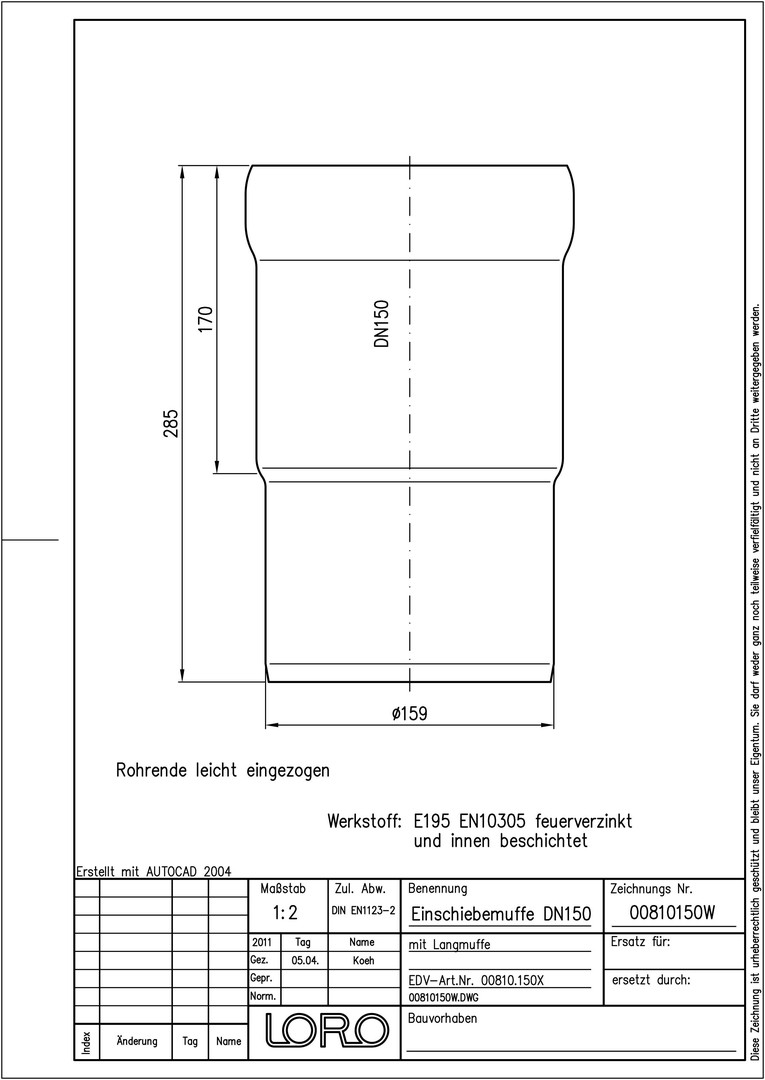 LORO X Einschiebmuffe DN 150, mit Langmuffe