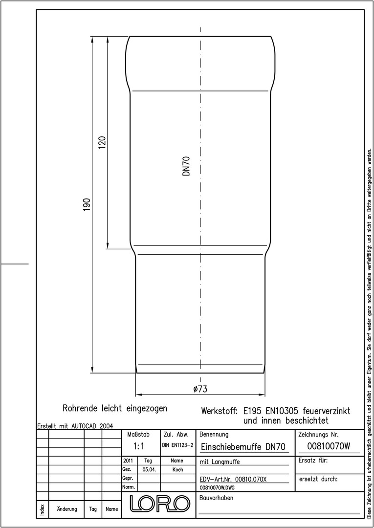 LORO X Einschiebmuffe DN 70, mit Langmuffe