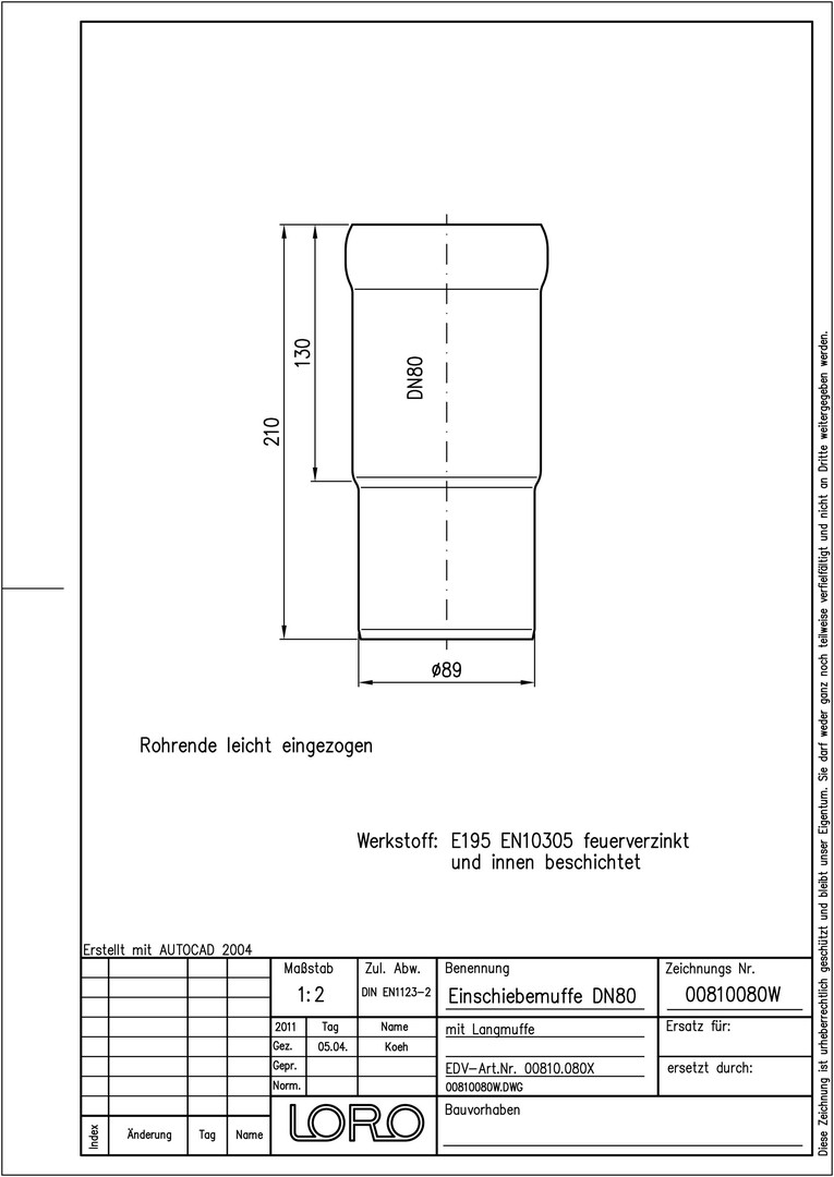 LORO X Einschiebmuffe DN 80, mit Langmuffe