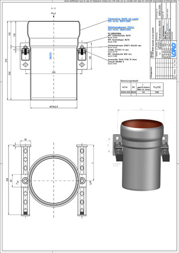 LORO X Fallrohrstütze DN 200, 320 mm, mit Befestigungskonsole, Schallentkopplung