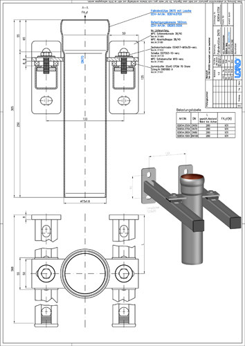LORO X Fallrohrstütze DN 70, 560 mm, mit Befestigungskonsole, Schallentkopplung