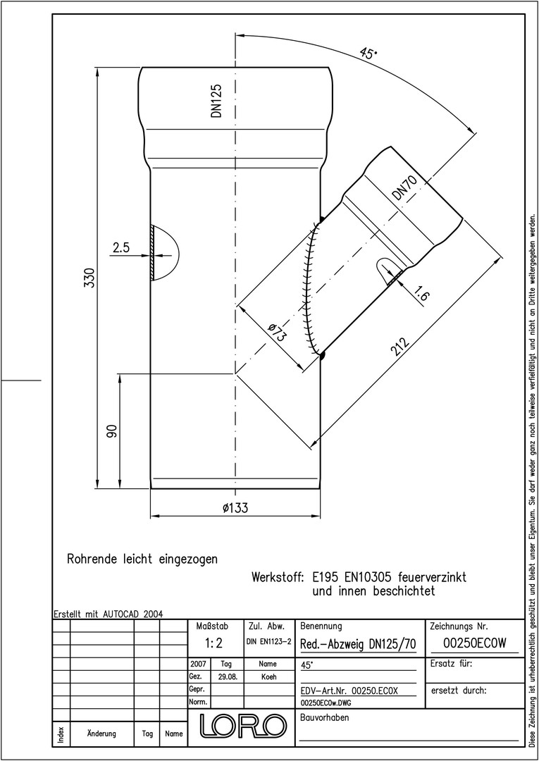 LORO X Reduzier-Abzweig DN 125/70, 45Grad