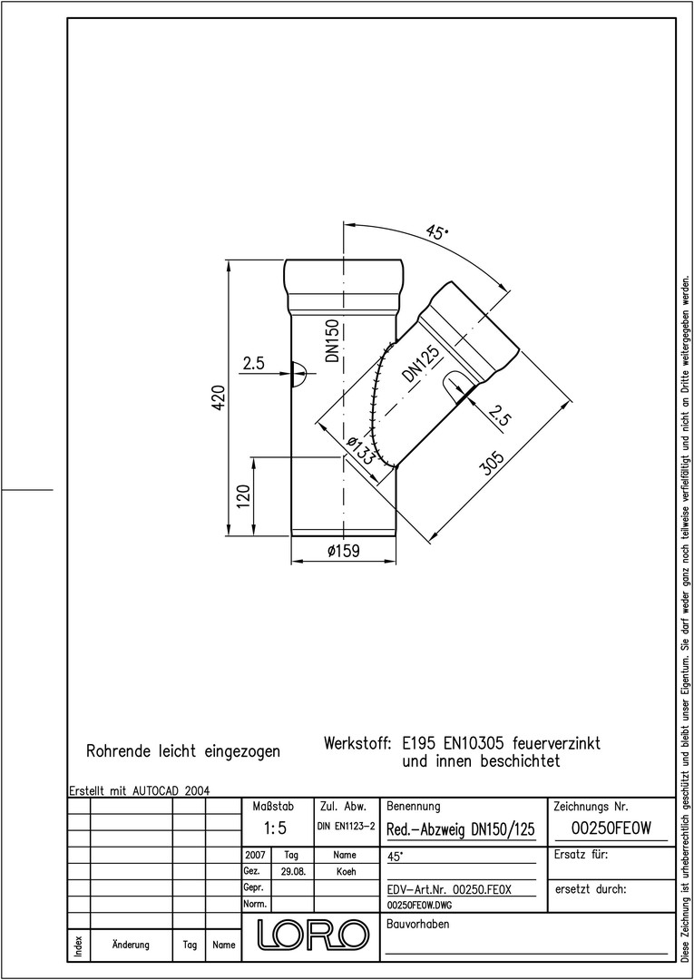 LORO X Reduzier-Abzweig DN 150/125, 45Grad