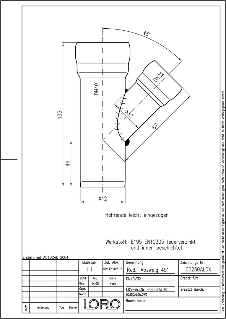 LORO X Reduzier-Abzweig DN 40/32, 45Grad W553124