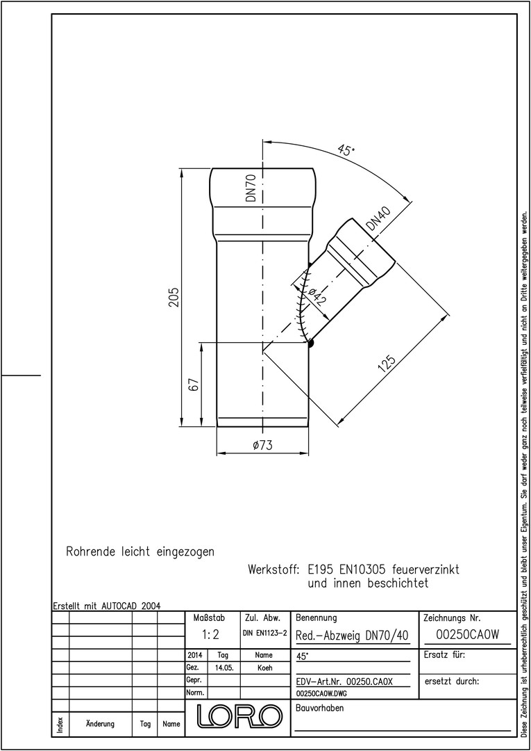 LORO X Reduzier-Abzweig DN 70/40, 45Grad