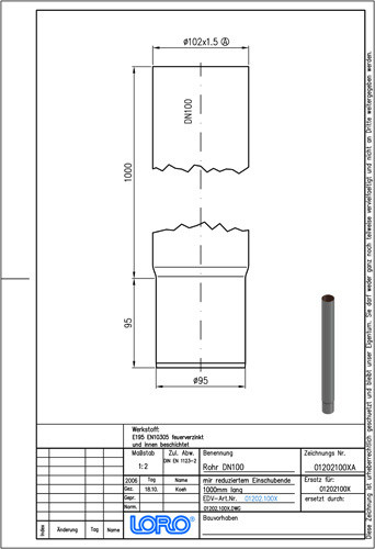 LORO X Regenfallrohr DN 100, 1000 mm, mit reduziertem Einschubende, Stahl