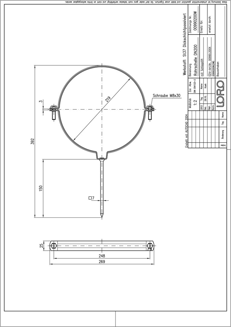 LORO X Rohrschelle DN 200, mit Schlagstift, aus Stahl, feuerverzinkt