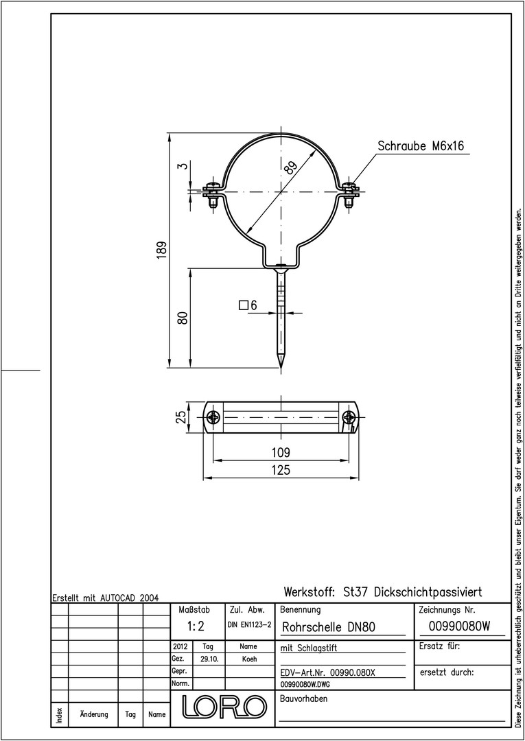 LORO X Rohrschelle DN 80, mit Schlagstift, aus Stahl, feuerverzinkt