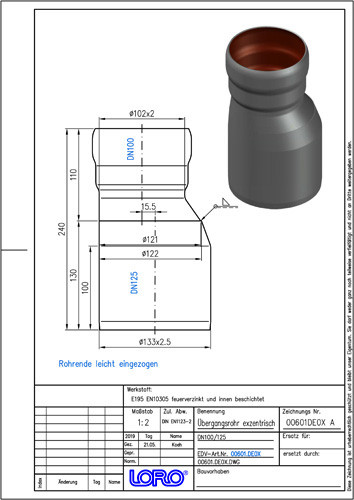 LORO X Übergangsrohr DN 100/125, exzentrische Reduzierstücke, Form 1
