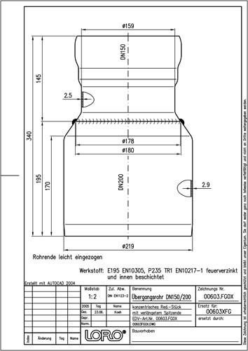 LORO X Übergangsrohr DN 150/200, konzentrische Reduzierstücke
