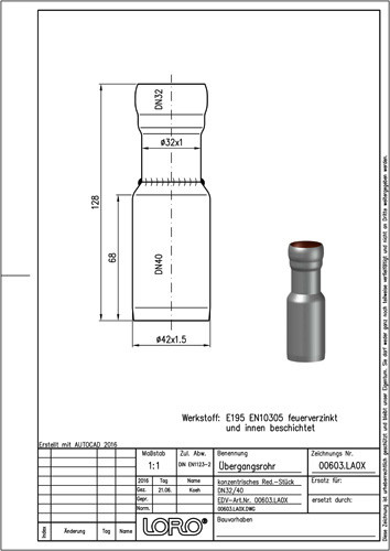 LORO X Übergangsrohr DN 32/40, konzentrische Reduzierstücke
