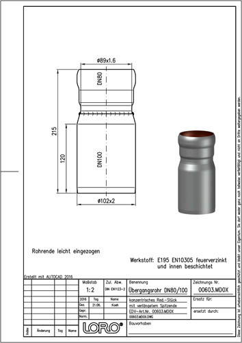 LORO X Übergangsrohr DN 80/100, konzentrische Reduzierstücke