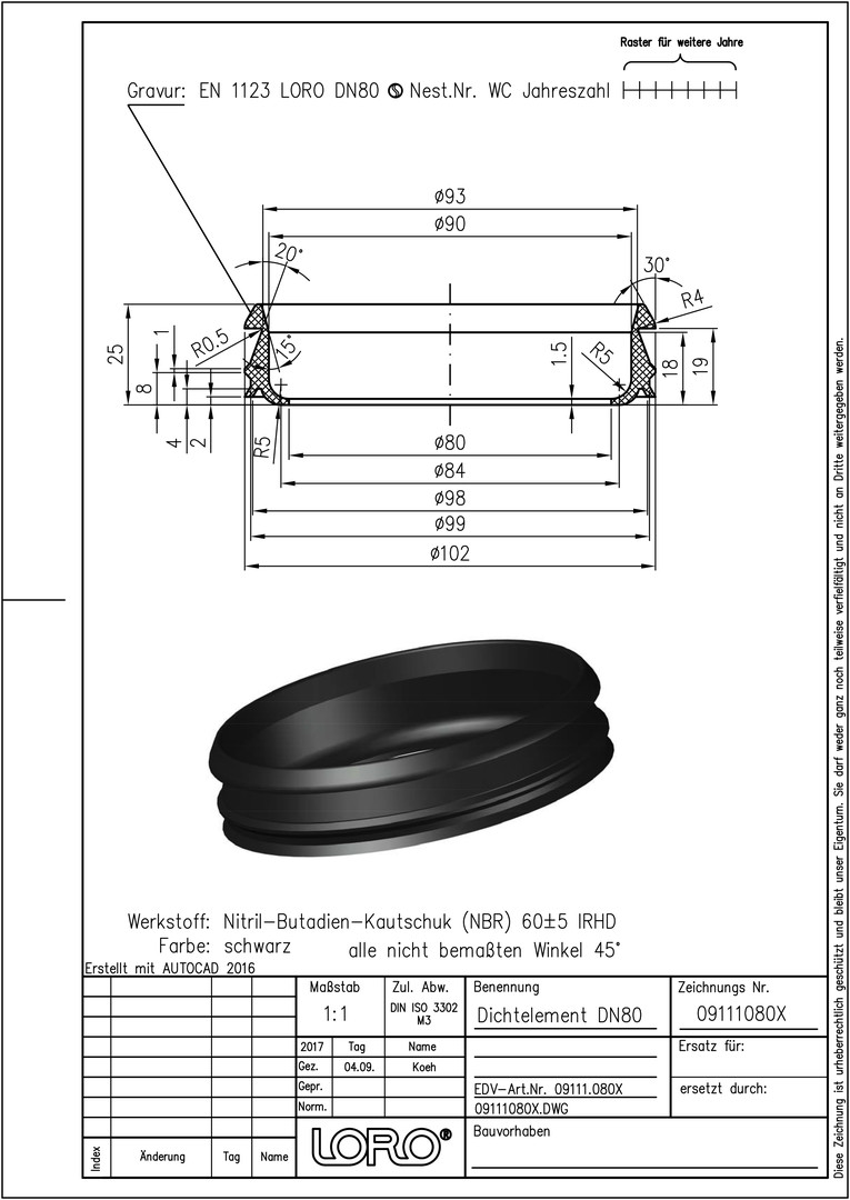 LORO XCL Dichtelement NBR DN 80, aus Nitril-Butadien-Kautschuk