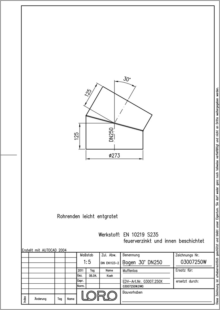 | Nenndurchmesser Anschluss 1 | DN 250 |