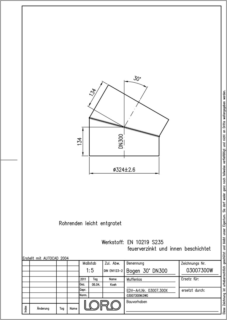 LORO XML Bogen 70°, DN 300, muffenlos W553576
