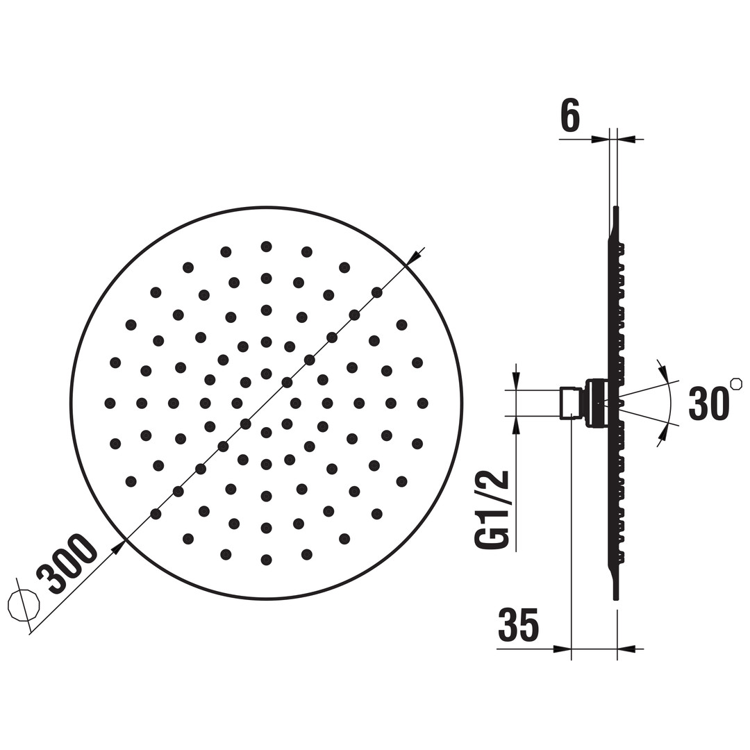 Laufen Kopfbrause d= 300mm, rund, ohne Brausearm, Edelstahl verchromt